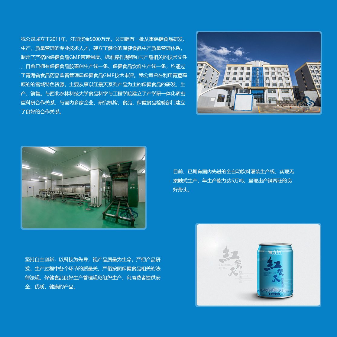鑫池源公司立足于青海省綠色環(huán)保無(wú)污染的高品質(zhì)紅景天資源,以西北農(nóng)林科技大學(xué)食品科學(xué)與工程學(xué)院和青海格拉丹東藥業(yè)有限公司為技術(shù)依托,主要從事紅景天、紅枸杞、黑枸杞等高原生態(tài)植物資源的研究開(kāi)發(fā)和深加工,產(chǎn)品包括“景胨”牌紅景天西洋參保健飲品、紅景天口服液、紅景天膠囊等系列產(chǎn)品。